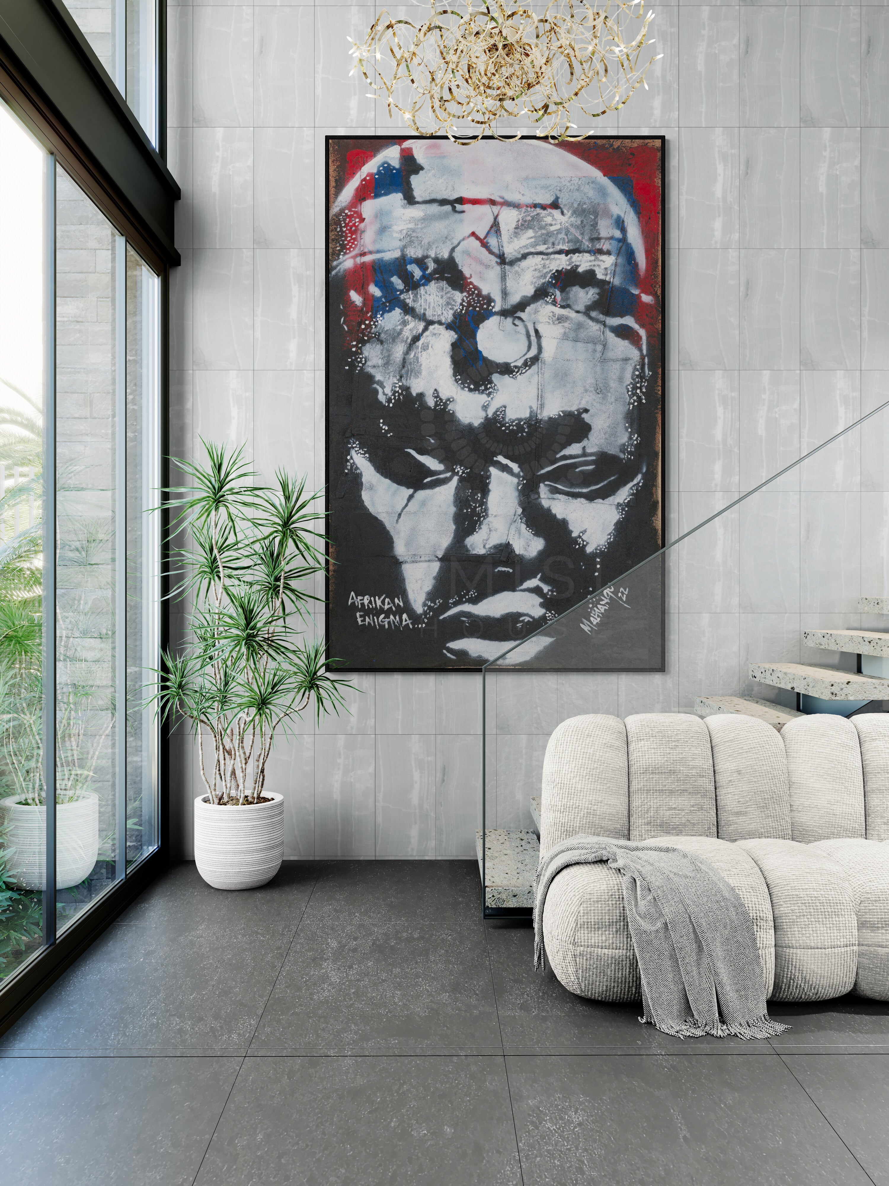 Afrikan Enigma speaks to a long-standing paradox: while Africa is the cradle of humankind and a wellspring of creativity, its cultural and artistic contributions have often been misunderstood or overlooked. “This piece confronts this contradiction, encouraging viewers to reconsider inherited narratives and recognize the enduring influence of African art and knowledge. Both contemplative and powerful, the work honors Africa’s timeless artistic legacy while celebrating its continuing role as a source of inspiration, innovation, and cultural depth.