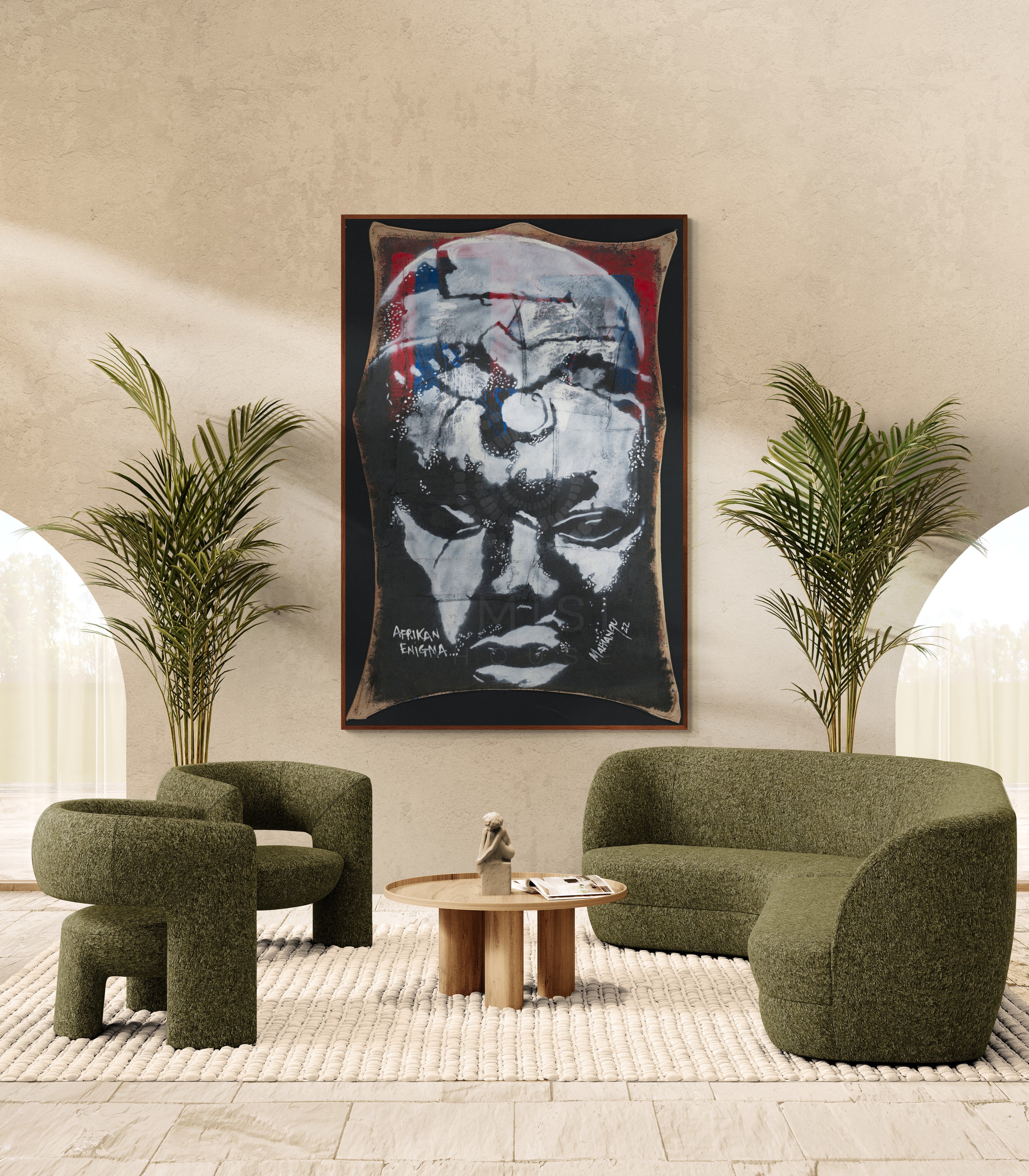 Afrikan Enigma speaks to a long-standing paradox: while Africa is the cradle of humankind and a wellspring of creativity, its cultural and artistic contributions have often been misunderstood or overlooked. “This piece confronts this contradiction, encouraging viewers to reconsider inherited narratives and recognize the enduring influence of African art and knowledge. Both contemplative and powerful, the work honors Africa’s timeless artistic legacy while celebrating its continuing role as a source of inspiration, innovation, and cultural depth.